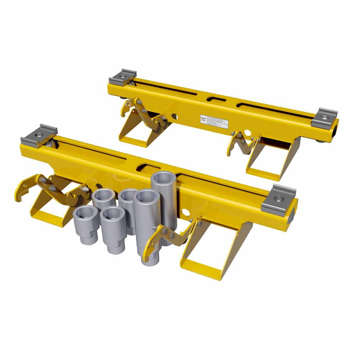 For use with any of our mobile column lifts configured in 2 columns engaging full-frame vehicles – the widest reach in the industry at 43”. Mobile frame-engaging kits enable lifting by the front and rear of the vehicle using stacking adapters. Kit comes standard with 3.5”, 5”, and 10” adapter extensions for greater reach.