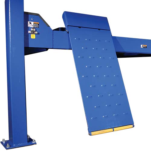 Cars. SUVs. Trucks. Vans. They can all drive right onto the SM14 and be in the air in no time. The gold standard of four post lifts, the SM14 is engineered with single-piece, non-welded runways to provide maximum long-lasting strength. Its louvered ramps provide improved traction and come with a powder-coated Hammer Tone paint finish for improved durability. And most importantly, the SM14’s adjustable latch bars ensure that the runways are level at any of the multiple locking positions.